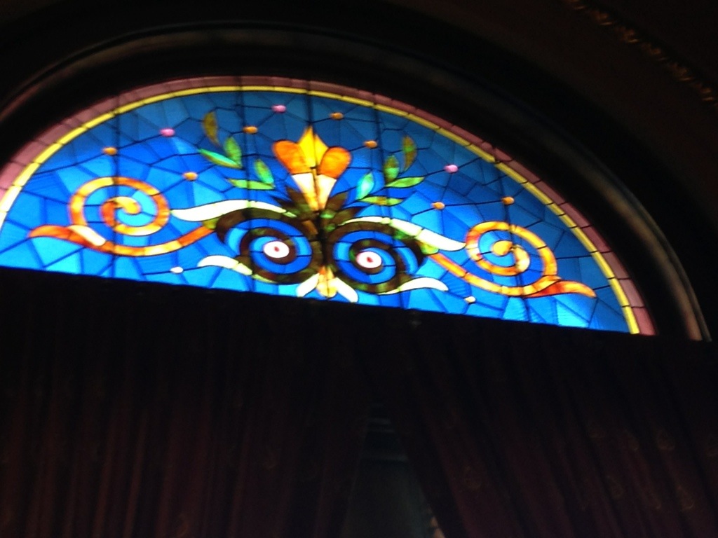 I couldn’t take any photos of the books, but the picture below is of one of the half dozen or so stained glass windows in the Supreme Court chambers.