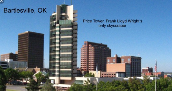The answer could be Jake Bartles, who owned a mill and a general store on the Caney River and traded with the Cherokee, Osage and Delaware, but it also could have been Carrsville for Nelson Carr who built the gristmill and also built the first school. Or Keelerville or Johnstoneville after George Keeler and William Johnstone who were investors in the 1870’s lucrative fur trade. All were notable citizens who invested their money, time and talents in the area to help found a thriving city that today even boasts of a Frank Lloyd Wright building in its downtown. I was charmed by the city and if I had to live in Oklahoma I’d choose Bartlesville.