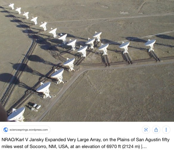 I highly recommend visiting this website for more information about this remarkable, hidden away treasure in our country. In particular, there is an excellent 23 minute video narrated by Jodie Foster giving a great overview of the VLA and its plans for a future Next Generation VLA at https://public.nrao.edu/gallery/beyond-the-visible-vla/. Check it out!