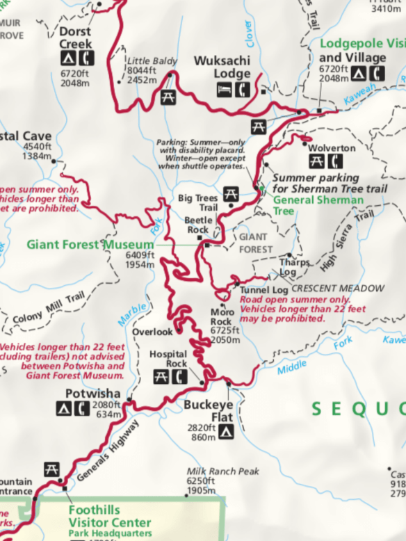 Seeing the park is a bit of a challenge, as the roads through the park to the various sites is one of the most convoluted and squiggly we’ve ever traveled. See our route below. The road with the most curves and switchback is the one we took. Fortunately it was slow going enough that we could really enjoy the the peace and other-worldliness of the park.