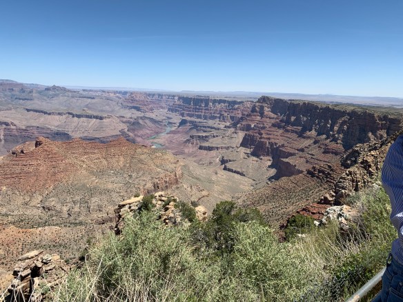 This is my third visit to the Grand Canyon, but in many ways my first. At the age of 12ish, I viewed the Grand Canyon through the haze of dramamine, and was only partially present. The second was about ten years ago when my sisters and I took a 5 hour trip from Las Vegas to stand by the edge of the canyon at the Grand Canyon Village for about an hour before returning. This time, Roger and I entered from the east and we stopped at many stops I’d never seen before, each with its own spectacular/awesome/magnificent view. We were sufficiently awed that when we did arrive at Grand Canyon Village and faced a very grand parking problem, we opted out and headed on down the road.