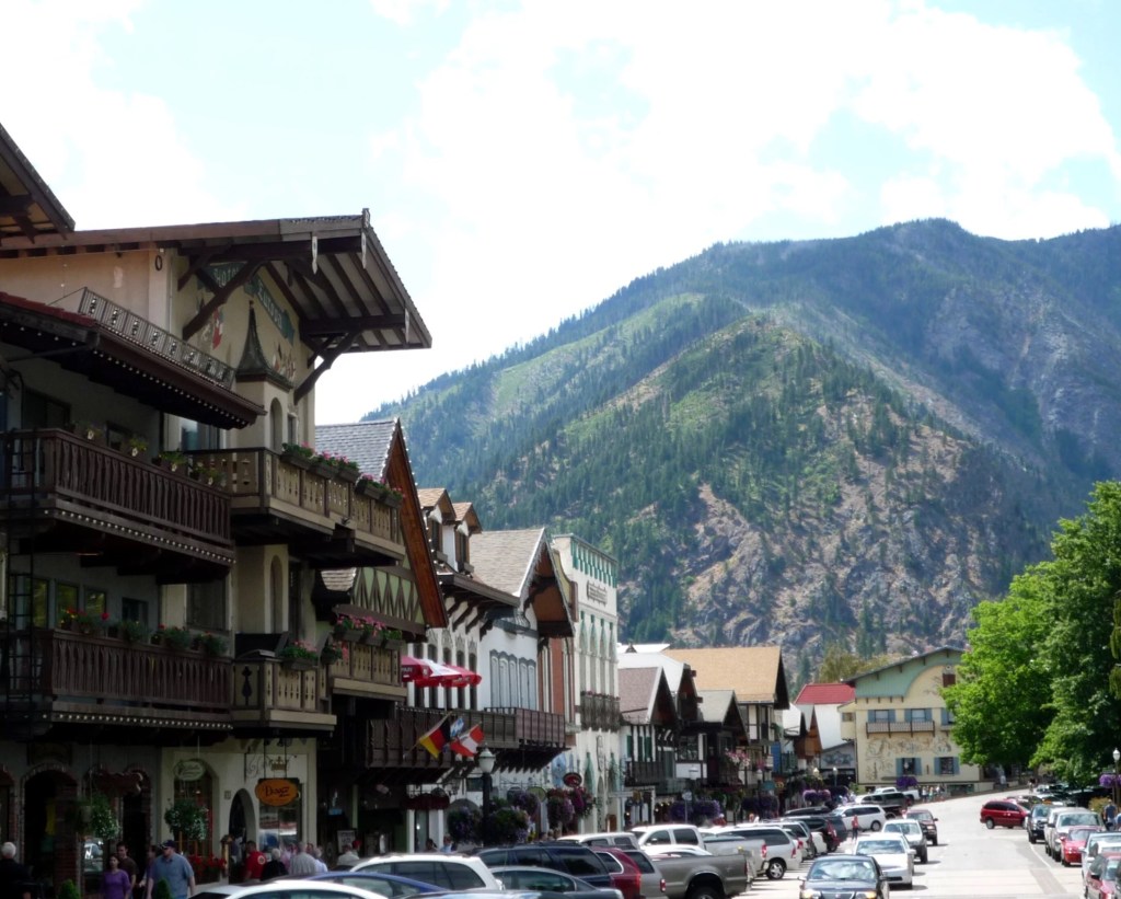 When the railroad relocated and the lumber mills closed, the town looked next to recreation as a major economy and in 1929 opened a ski jump. To this day recreation is the town’s primary economy. However, in the 1960’s in an effort to bolster the economy further a couple of Seattle business created the idea of a theme town, and the community settled on a Bavarian theme. The idea survives and thrives to this day. When you first enter the town, you’re immediately struck by the German appearance of the buildings and stores (even Starbucks uses a German font), the windows filled with flowers, and the vast assortment of different restaurants that serve German food. That said, the village actually has no connection to Bavaria; instead the land boasts of a rich Native American and pioneering heritage.